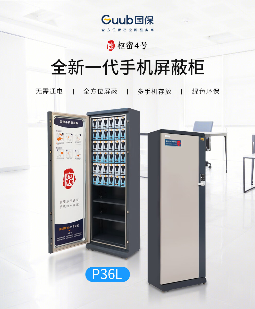 國保(Guub)36格手機(jī)屏蔽柜保密認(rèn)證5G信號屏蔽柜IPAD存放柜P36L(左開門)